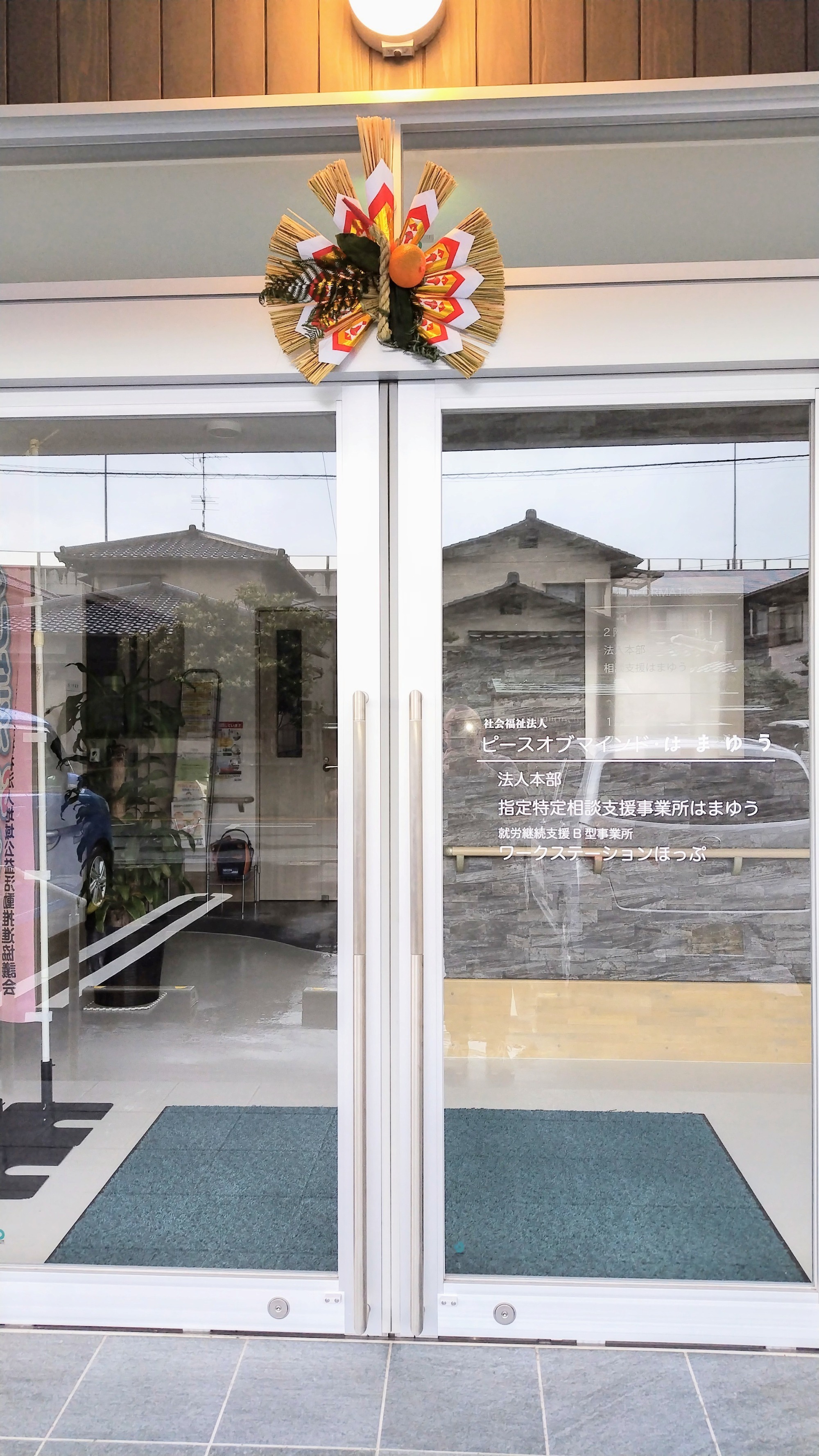 「作業所(当時は共同作業所と言っていました)を利用してくれる皆に、安心を提供するのが我々の仕事だと思うんです」という彼が、「”安心”を英語にしたら、”ピースオブマインド”ですね」という所から、下関市の花である”はまゆう”と合わせて現法人名が決まりました。
